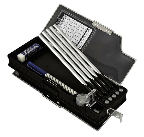 仕様 2ドアタイプ 安全鉛筆ホルダー/裏表合わせて鉛筆14本収納可能 三角定規収納可能 ケズール(鉛筆削り)付 本体サイズ 245mm×92mm×35mm 材質 オレフィン系シート(表紙)/ポリプロピレン(芯材)/ハイインパクトスチロール(成形皿)/ポリエチレン(鉛筆ホルダー)