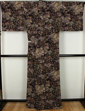 【新品】小紋 袷 丹後縮緬地 濃紺・小豆色地四季花 菊・松竹梅・萩・紅葉・ススキ・雲 174 広襟 トールサイズ 新品 しつけ付き 生地 表地:正絹 胴裏地:正絹 八掛:正絹 寸法 身丈:約174cm(肩袖付け上から裾までの採寸)身丈:約170cm(背筋後襟下より裾までの採寸)裄丈:約70cm(裄は約1cm出ると思います)袖丈:約49cm 袖幅:約35.5cm 後幅:約31cm 前幅:約25cm 両肩の縫い代:約3cmずつあります。