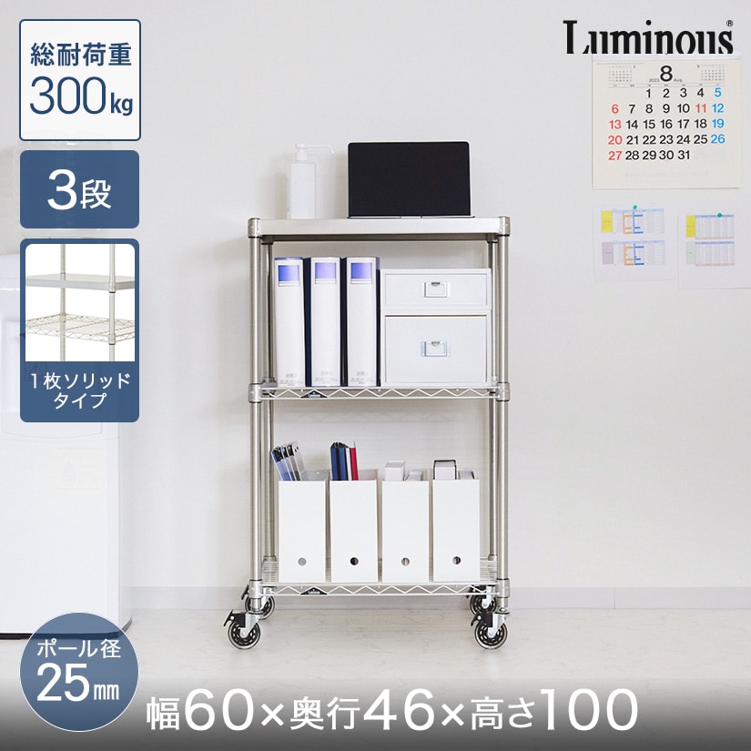 【送料無料】 防錆 ルミナス スチールラック ラック ルミナスプレミアムライン 1枚ソリッドシェルフ 3段 幅60 奥行46 Z1H-60903 ポール径25mm