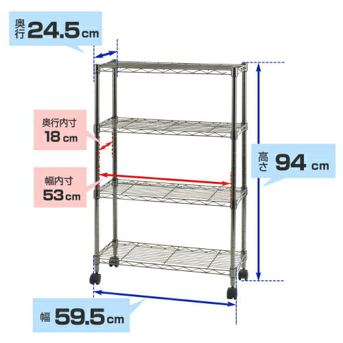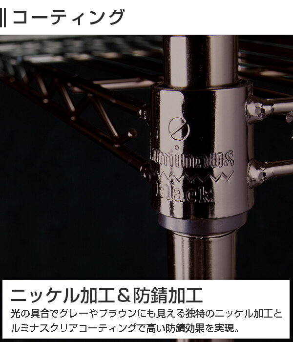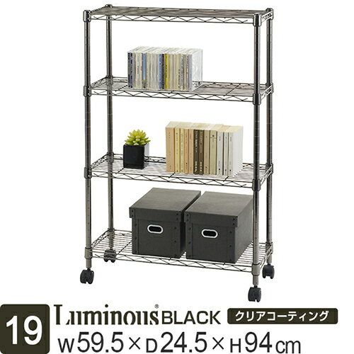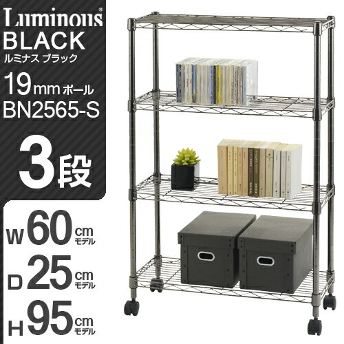 スチールラック 幅60 デザイン性の高い 黒い輝きのスチールラック アイアン カラーラック(ブラック 光沢)BN2595-S [ポール径 19mm]幅60x奥行25x高さ90/4段(幅59.5×奥行24.5×高さ94cm) 【収納家具/メタル ラック/1年間メーカー保証 W60 D25 収納棚 スチール棚