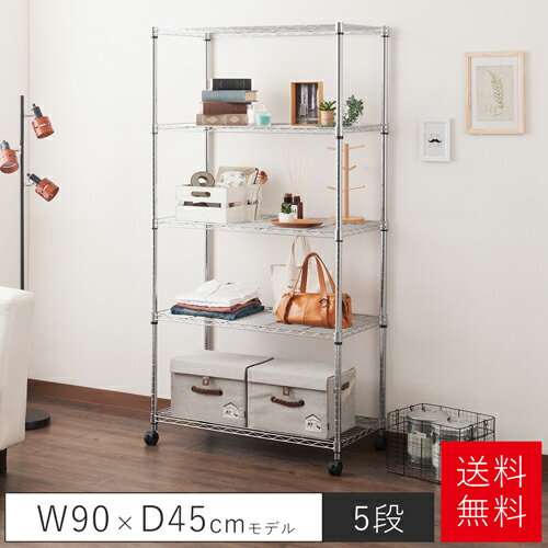 スチールラック 幅90 収納ラック キャスター付き おしゃれ キッチン 収納家具 スチールラック メタルルミナスラック 5段 90W NE25-90185[ポール径25mm]幅91.5×奥行46×高178.5cm オープンラック オープンシェルフ ルミナス 収納棚 スチール棚