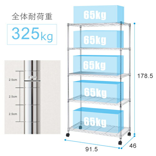 【クーポン配布中!6/15(月)9:59まで】【送料無料】 [25mm] ルミナスレギュラー スチールラック 幅76 奥行46 高さ180 5段 キャスター付 ◇ 幅76×奥行46×高さ179.5cm NLH7618-5