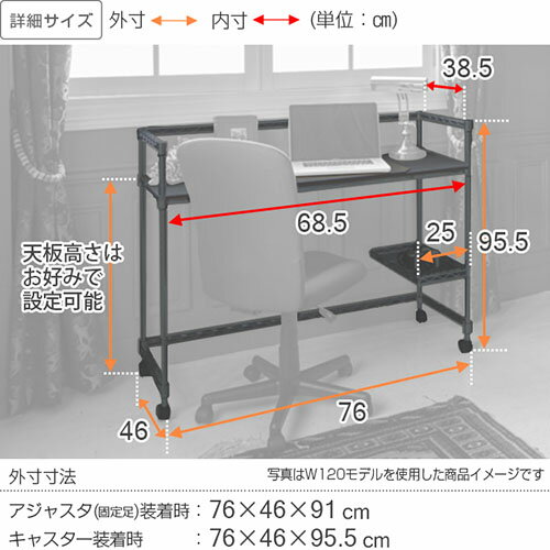【ポール径25mm】ルミナスレギュラー スチールラックデスク・作業台[ヴィンテージナチュラル]75W 幅76×奥行46×高さ95.5cm DESK-7645VNA 収納棚 スチール棚